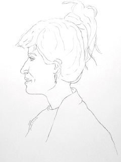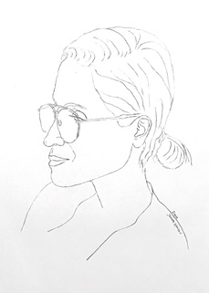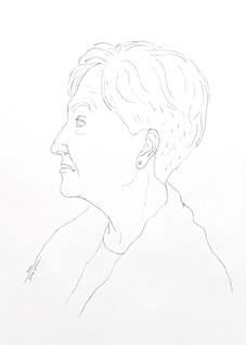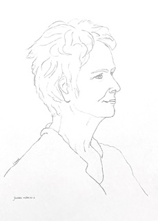 Het maken van portretten is waar mijn hart ligt. Ik was dan ook erg blij om te ontdekken dat binnen Het Bossche Palet , er een groep bestaat die speciaal en alleen portretten maakt. En elke week een nieuw model ( soms komt een model meerdere keren ), dat sprak mij zeer aan en ik startte daarom in september 2019 bij de portretgroep. Onder leiding van docent Peter Linnartz kan ik mijn tekenvaardigheden verder ontwikkelen. Vanaf het begin ontdekte ik dat mijn voorkeur uitgaat naar het maken van lijntekeningen met houtskool. Omdat ik lijntekeningen maak, is het de kunst om in lijnen de juiste vorm en uitdrukking weer te geven. Dit doe ik op papierformaat 65 x50 cm. Het is van recentere datum ( circa januari 2024 ) dat ik de lijntekeningen vervolgens gebruik om het model te schilderen met acrylverf op canvasboard formaat 30×24 cm.